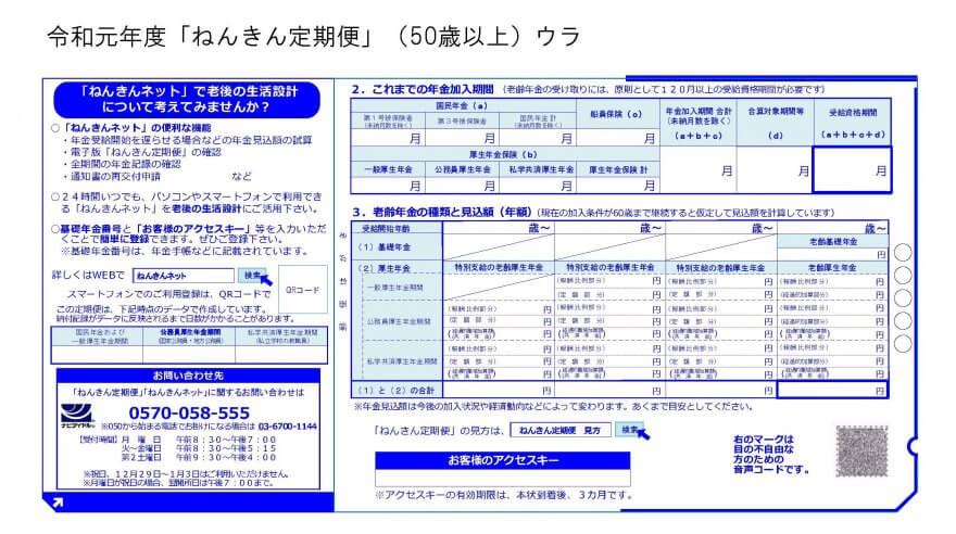 今回は、「50歳以上の方」の「ねんきん定期便」様式です。